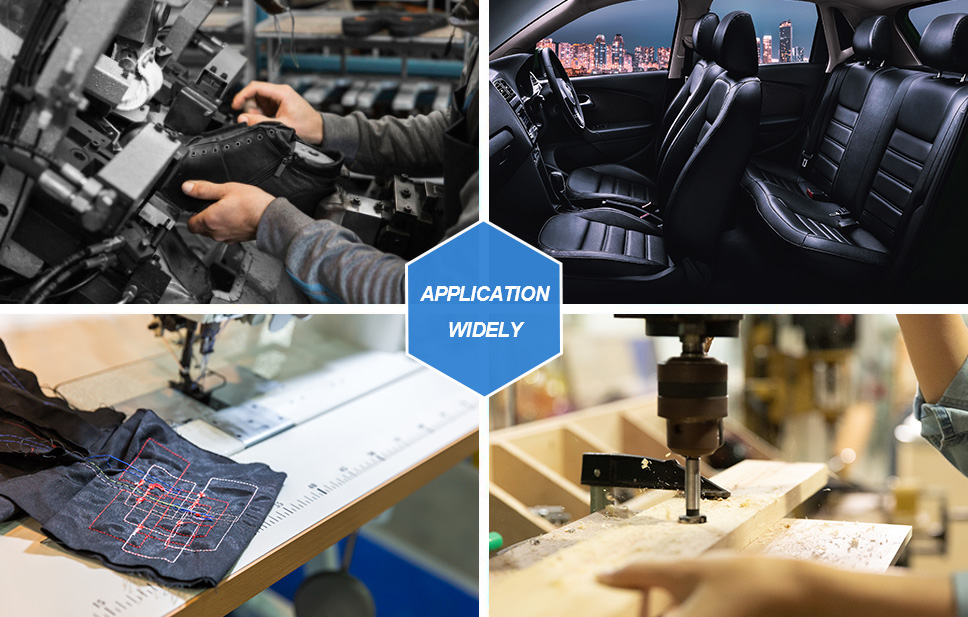 Can be widely used in shoes, bags, leather, clothing, hat industry, automotive interior and other industries, the products are favored by customers